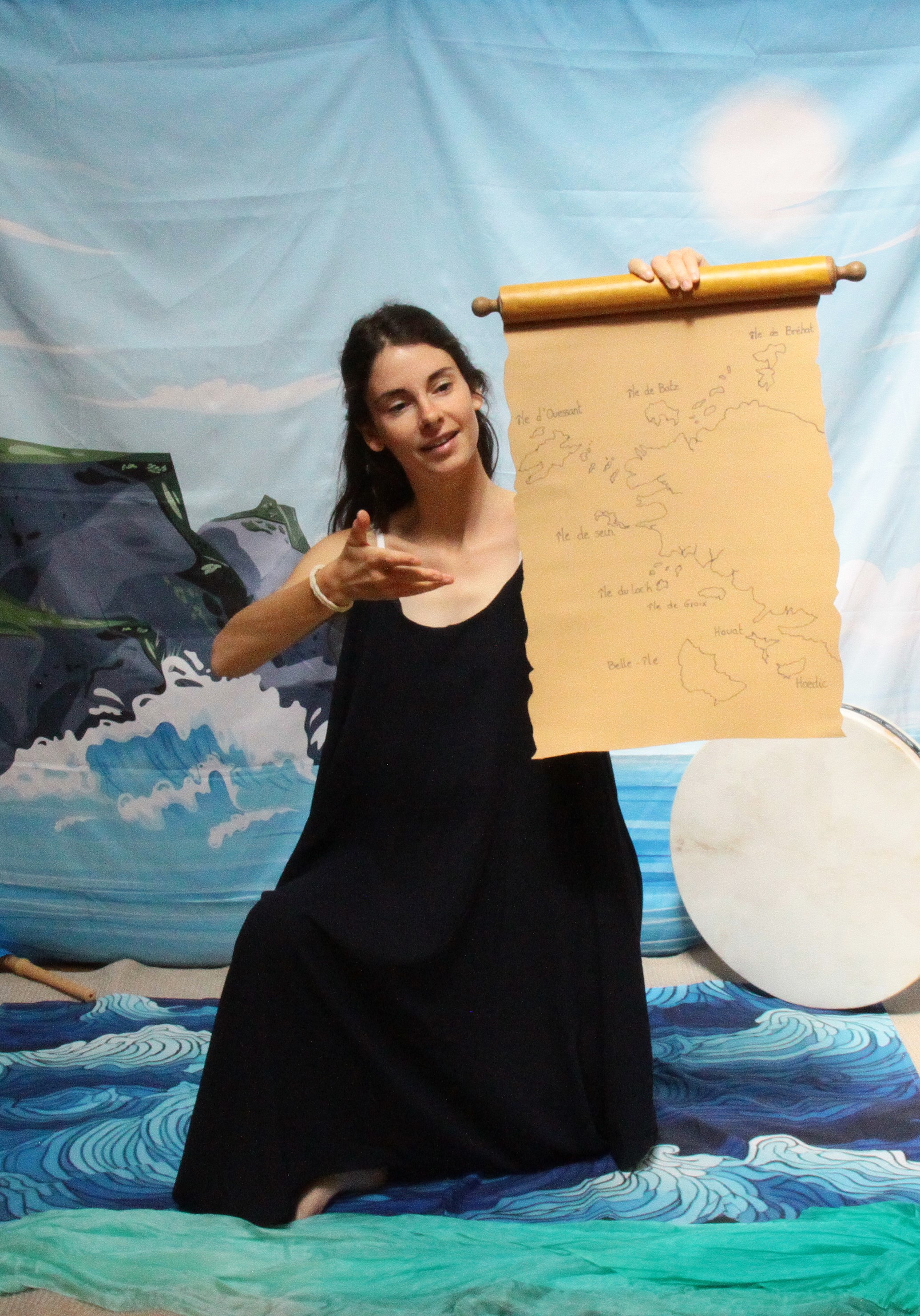 Transportés par le chant des vagues grâce à l’ocean drum, et guidés par la carte marine, nous naviguons d’île en île à la découverte des légendes qui les habitent.